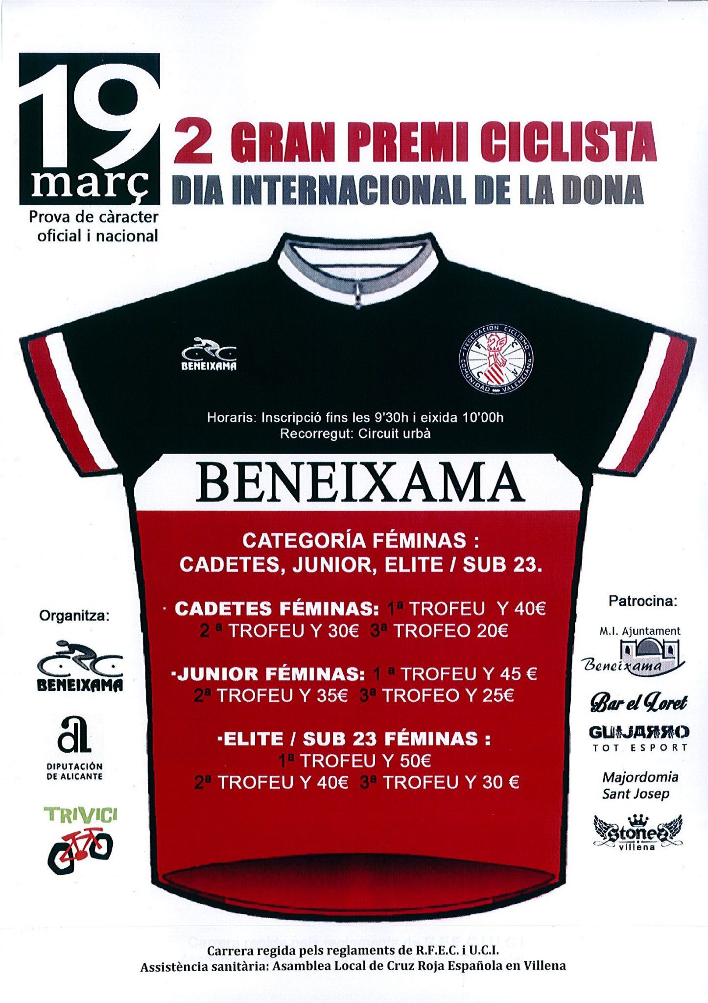 El Club Ciclista Beneixama amb la col·laboració del M.I. Ajuntament de Beneixama, organitza el dia 19 de març el II Gran Premi Ciclista Dia Internacional de la Dona. Enguany es celebra la seua segona edició. Aquesta prova és de caràcter oficial i nacional. Les inscripcions es tancaràn a les 9,30 hores donant començament la prova a les 10,00 hores.