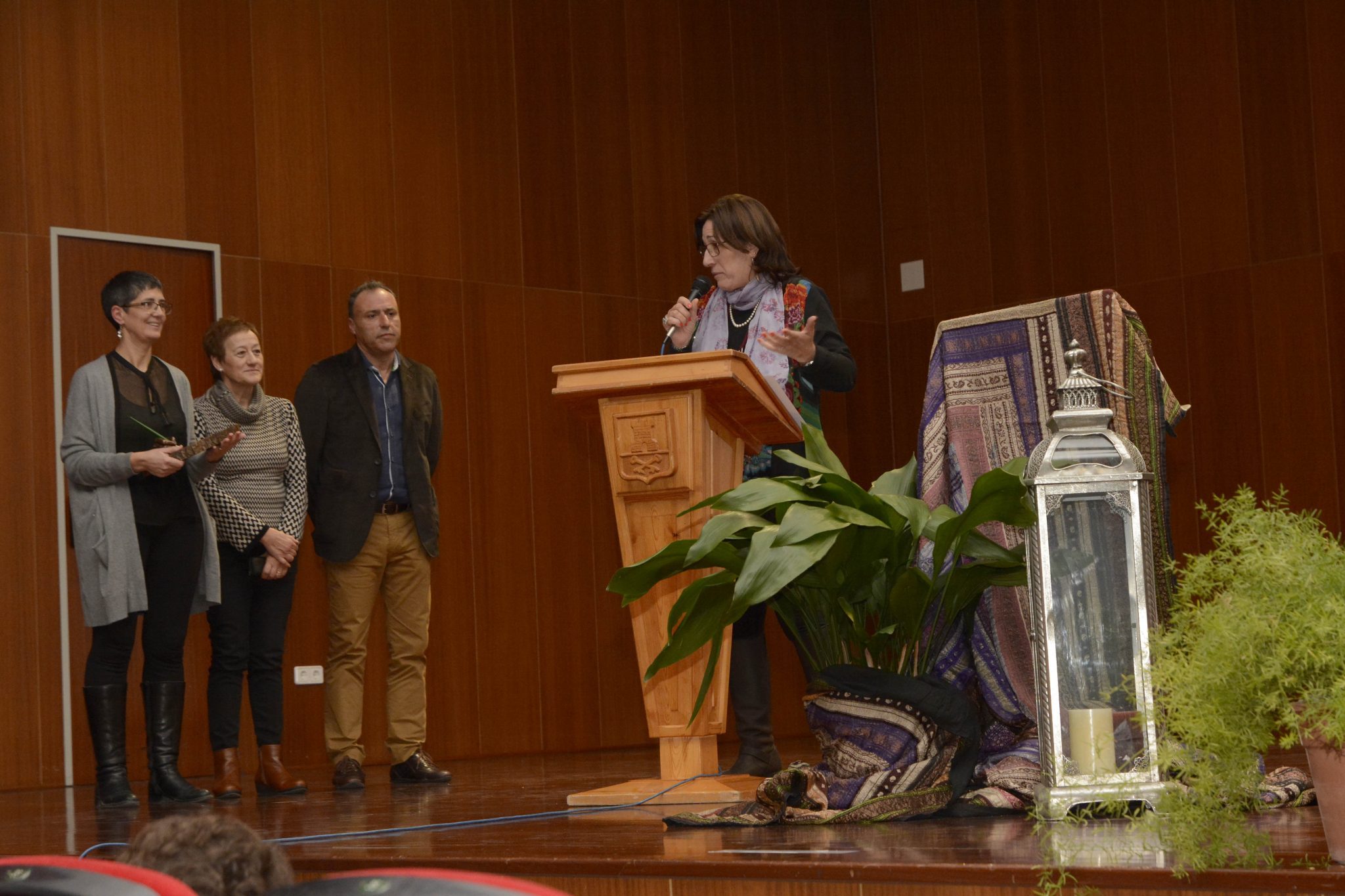 El premio en la modalidad de valenciano/catalán fue para Montse Assens y Anna Rispau por el poemario “In crescendo”. Montse recogió el trofeo de manos del alcalde, Vicente Ibáñez, y recitó algunos de los poemas de la obra. Se trata de un poemario en el cual los poemas van creciendo en número de versos, desde el primero, que es un solo verso, pasando por un pareado, un haiku, un cuarteto, etc. hasta el último, que es un soneto, para acabar con un párrafo de prosa poética. Los nombres de los poemas hacen referencia a la música, y están en consonancia con el ritmo tan marcado de este fantástico trabajo poético.