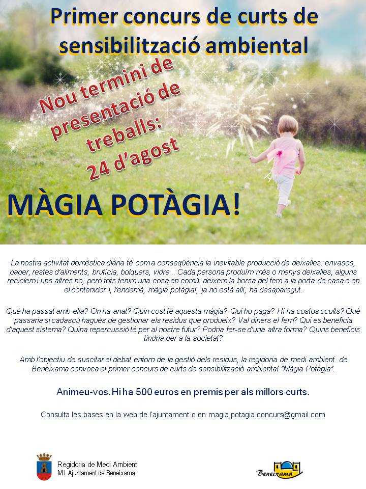 Amb l’objectiu de suscitar el debat entorn a la gestió dels residus, la Regidoria de Medi Ambient de Beneixama convoca el primer concurs de curts de sensibilització ambiental Màgia Potàgia.